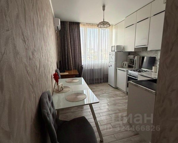 Описание: Просторная квартира в Жилом комплексе "Кутузовский". ЖК Кутузовский - один из крупнейших жилых комплексов комфорт - класса в Новороссийске, находящийся в тихом, экологически чистом Южном районе города. Это современный ЖК, расположенный на территории площадью 85 тысяч кв.метров (в три с половиной раза больше, чем Красная площадь в Москве). Здесь будет возведено в общей сложности двадцать три корпуса высотой от двенадцати до шестнадцати этажей, площадью от 39 до 80 кв. метров, с количеством комнат от одной до трех, материал строительства монолит-кирпич. Соседи "Кутузовского" - Чёрное море, тихий посёлок Мысхако с виноградниками и центр Новороссийска. В близи от жилого комплекса (10 минут пешком) расположена Пионерская роща - место для неспешных вечерних прогулок. 10 минут на автомобиле и вы на пляже, наслаждаетесь чудесным рассветом или прекрасным закатом. До всего самого нужного не больше 15 минут на автомобиле или пешком. В 5 минутах езды от жилого комплекса расположен гипермаркет "Лента", продуктовый рынок и развлекательный центр "GoodZone". В непосредственной близости от новостройки работают: три общеобразовательных школы, четыре муниципальных и два коммерческих садика, что безусловно является огромным плюсом для семей с детьми. Любители активного образа жизни оценят близость пляжей, бассейна, батутного центра, спортивного комплекса, роллердрома. Провести досуг можно в расположенных поблизости ресторанах, уютных кофейнях и семейных кафе. Кроме того, в этом районе города отлично развита транспортная инфраструктура— можно без труда добраться в любую точку города. 1 комнатная в предчистовой отделке, расположена на последнем этаже, не угловая! Удобная планировка на 2 стороны (2 балкона)! Красивый вид на горы и боковой вид на море! Дом монолитно-кирпичный, вдали от шумных дорог, есть подземный паркинг!