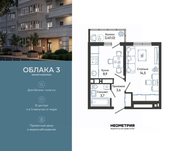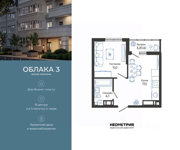 Продается квартира в жилом комплексе "Облака" от федерального девелопера "Неометрия". Современный жилой комплекс расположен на границе Южного и Центрального районов Новороссийска — в развитой, благоустроенной локации всего в 5 минутах езды от моря и центра города. Здесь мягкий климат, чистый воздух и гармоничное сочетание природы и городской инфраструктуры. Всё для комфортной жизни: • Закрытая дворовая территория без машин; • Подземный паркинг с доступом на лифте; • Колясочные в каждом подъезде; • Сквозные входные группы на уровне земли; • Просторные квартиры с видами на горы и море. Современное благоустройство: Во дворах реализована концепция "активити-парка" — это большое зелёное пространство для отдыха и занятий спортом: • Детские площадки, разделенные по возрасту ребенка; • Зоны воркаута, йоги и командных игр, внесенные за периметр двора; • Озеленённые аллеи и уютные места для прогулок; • Общественные огороды для семейного досуга. Развитая инфраструктура в шаговой доступности: • 5 детских садов; • 3 школы; • 5 высших учебных заведений; • 2 поликлиники; • 2 крупных торговых центра; • Супермаркеты и магазины; • Удобные остановки общественного транспорта. Застройка ведётся по 214-ФЗ с использованием эскроу-счетов, что обеспечивает безопасность сделки и прозрачность на всех этапах. • 3 очередь проекта — сдача в IV квартале 2026 года, класс бизнес • 2 очередь — сдана в 2024 г., класс комфорт-плюс • 1 очередь — сдана в 2020 г., класс комфорт-плюс