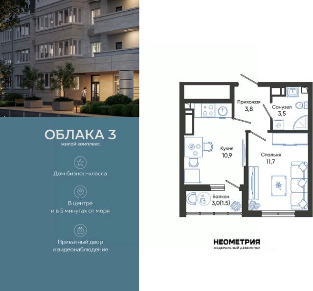 Проект включает в себя 2 дома высотой 23-24 этажа. В подъездах выполнена дизайнерская отделка в светлой цветовой гамме, для удобства жителей в местах общего пользования предусмотрена навигация. В каждой секции предусмотрены помещения для хранения велосипедов и колясок с обустроенным местом для мойки колес и лап домашних животных. Покупателям в ЖК предложено множество планировочных решений: в наличии квартиры, как классического типа, так и европланировки. На балконах и лоджиях выполнено витражное остекление. Из окон открывается шикарный вид на город и море. Квартиры сдаются без отделки. Двор комплекса закрыт от автомобилей и случайных прохожих. Для автовладельцев предусмотрен двухуровневый подземный паркинг на 650 мест. По всему периметру двора размещены видеокамеры. Внутренний двор благоустроен: предусмотрены пешеходные дорожки, скамейки и деревянные мини-беседки с розетками. Также спроектированы детские игровые площадки, уличные тренажеры и спортивная площадка для командных игр. ЖК расположен в южной части Новороссийска, на пересечении Мысхакского шоссе и улицы Куникова. Инфраструктура района развита: в пешей доступности детские сады, школы, аптеки и поликлиники, магазины и парки. Продается 1-комнатная квартира 1-комнатных квартир в Облака в Новороссийске.