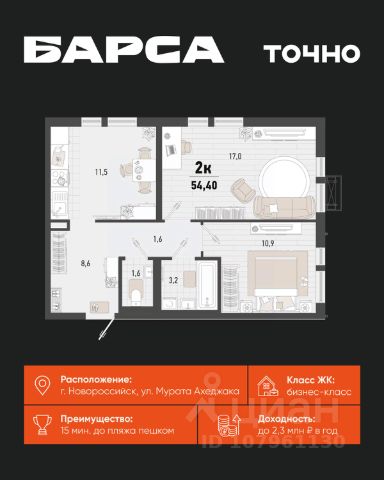 • ✓ В базе Циан 2,6 тыс. 2-комнатных квартир до 18 млн. рублей в Новороссийске