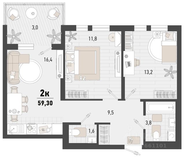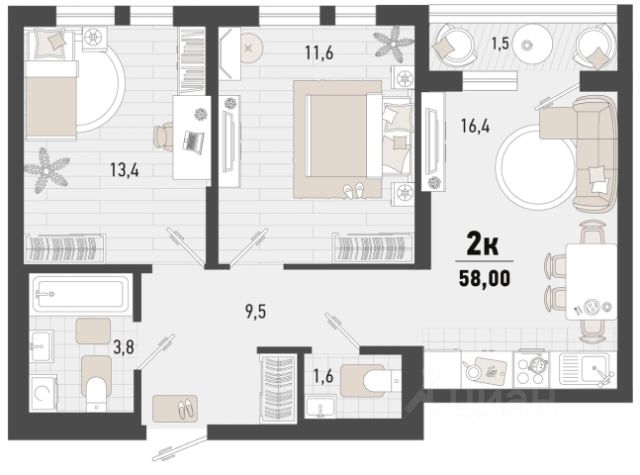 • ✅ Минимальная площадь: 58 м²