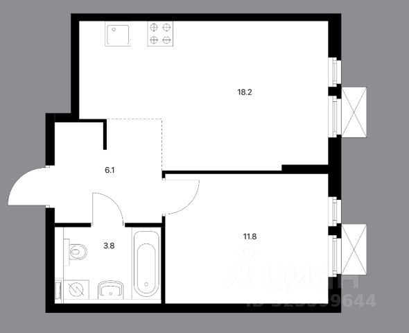 Общая площадь 61,8 кв.м.