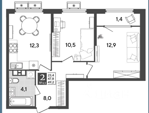 • ✅ Минимальная площадь: 49,2 м²