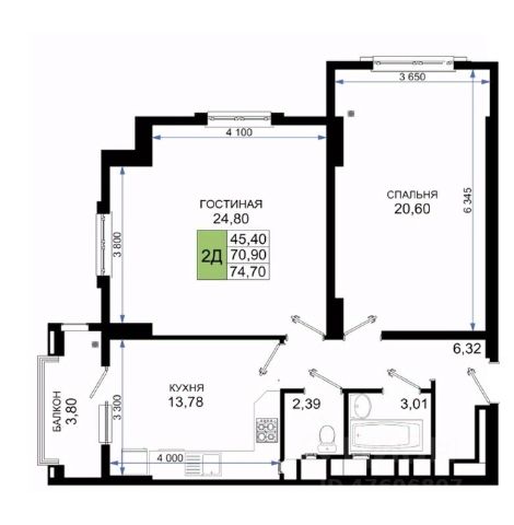 Общая площадь 61,8 кв.м.