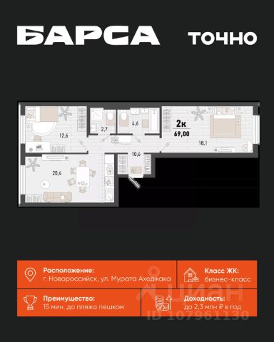 Уникальная 2-комнатная Квартира 106 площадью 91,42 кв.м. в ЖК "Золотой Берег" — 800 метров или 10 минут до моря, современный дизайн и все условия для комфортной жизни! Предлагаем вам идеальную квартиру в жилом комплексе "Золотой Берег" от компании "СРЕДАстрой". Это уникальное предложение сочетает в себе все, что нужно для удобной и комфортной жизни в одном из лучших районов города. Преимущества квартиры: • 800 метров или 10 минут до моря — наслаждайтесь свежим морским воздухом, ежедневным завораживающим видом на море, живописным закатом и это каждый день. • Ипотека от 3,5 % — доступные условия для приобретения квартиры/ жилья вашей мечты. • Рядом с домом: 2 детских сада, 4 школы — всё необходимое для развития и обучения ваших детей в шаговой доступности. • Детские площадки во дворе без машин — безопасная среда для игр и отдыха. • Выбор отделки: квартиры с качественной отделкой или качественная ПЧО/ без отделки, что позволит вам создать интерьер по своему вкусу. • Современный и красивый дизайн домов, подъездных холов — эстетика и стиль, продуманные до мелочей. Инфраструктура: • В шаговой доступности: гипермаркет Лента, магазины, кафе, аптеки, фитнес-центры — всё, что нужно для комфортной жизни. • Тип дома: монолитно-кирпичный, построенный по современным технологиям, 17/ 16 этажей с прилегающими торгово-офисными помещениями. • Паркинг: -1 этаж подземный отапливаемый паркинг с видеонаблюдением 24/7. Прямой доступ на лифте — удобно и безопасно.закрытая территория всего комплекса, нет посторонних людей. Описание квартиры: • Просторные комнаты с продуманной планировкой и панорамными окнами. • Возможность индивидуального дизайна интерьера или готовая качественная отделка. • Современные инженерные системы и высококачественные материалы. ЖК "Золотой Берег" — это сочетание высокого качества строительства, удобной инфраструктуры и прекрасного расположения. Здесь каждый найдет всё, что нужно для комфортной и счастливой жизни. Купить 2-комнатную квартиру в новостройке без отделки в Новороссийске.