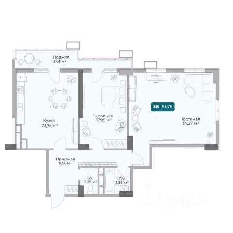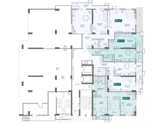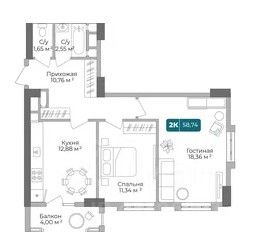 - Общaя площaдь 55.2 кв.м