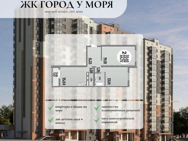 Продается квартира в жилом комплексе "Облака" от федерального девелопера "Неометрия". Современный жилой комплекс расположен на границе Южного и Центрального районов Новороссийска — в развитой, благоустроенной локации всего в 5 минутах езды от моря и центра города. Здесь мягкий климат, чистый воздух и гармоничное сочетание природы и городской инфраструктуры. Всё для комфортной жизни: • Закрытая дворовая территория без машин; • Подземный паркинг с доступом на лифте; • Колясочные в каждом подъезде; • Сквозные входные группы на уровне земли; • Просторные квартиры с видами на горы и море. Современное благоустройство: Во дворах реализована концепция "активити-парка" — это большое зелёное пространство для отдыха и занятий спортом: • Детские площадки, разделенные по возрасту ребенка; • Зоны воркаута, йоги и командных игр, внесенные за периметр двора; • Озеленённые аллеи и уютные места для прогулок; • Общественные огороды для семейного досуга. Развитая инфраструктура в шаговой доступности: • 5 детских садов; • 3 школы; • 5 высших учебных заведений; • 2 поликлиники; • 2 крупных торговых центра; • Супермаркеты и магазины; • Удобные остановки общественного транспорта. Застройка ведётся по 214-ФЗ с использованием эскроу-счетов, что обеспечивает безопасность сделки и прозрачность на всех этапах. • 3 очередь проекта — сдача в IV квартале 2026 года, класс бизнес • 2 очередь — сдана в 2024 г., класс комфорт-плюс • 1 очередь — сдана в 2020 г., класс комфорт-плюс #Z7OAE2 Продам 2-комнатную квартиру с отделкой в готовой новостройке в Новороссийске.