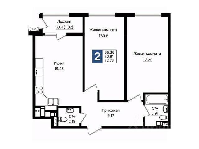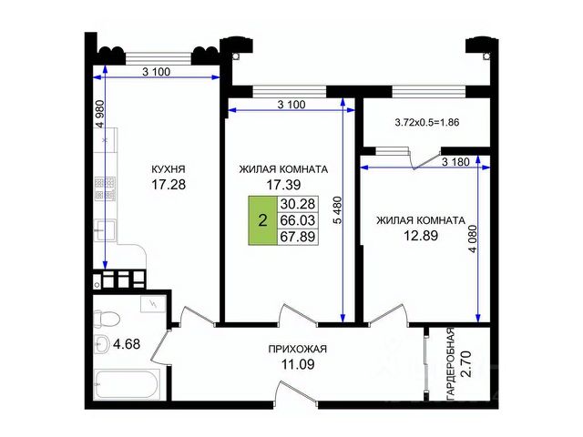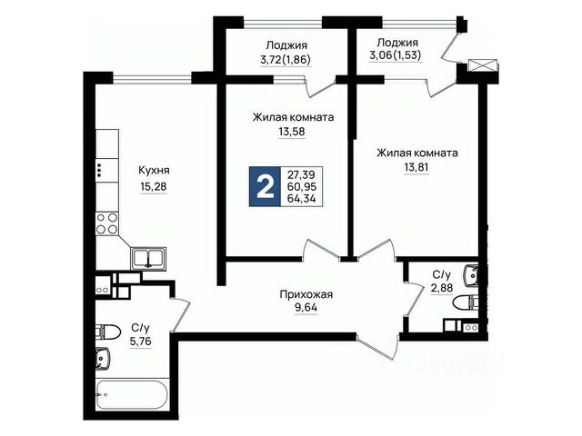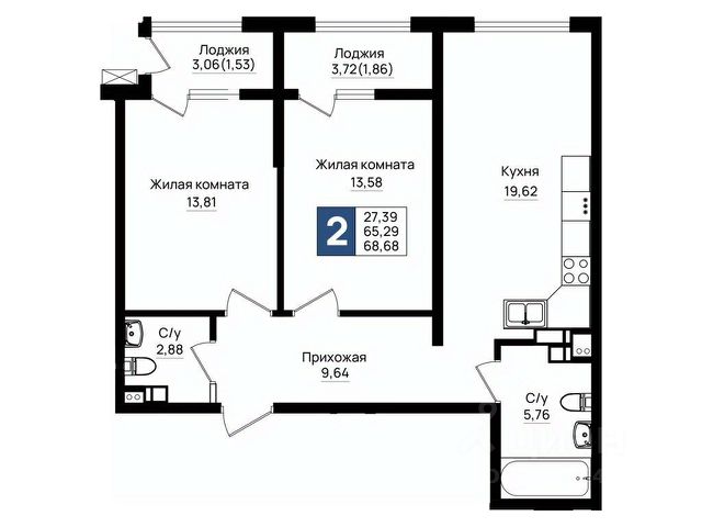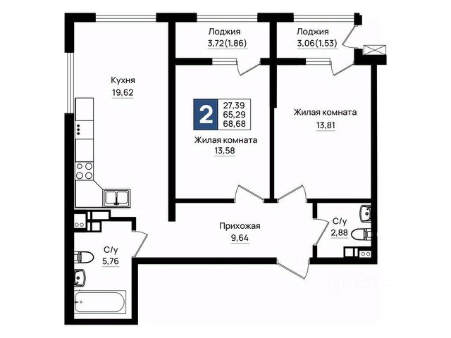 - Общaя площaдь 55.2 кв.м