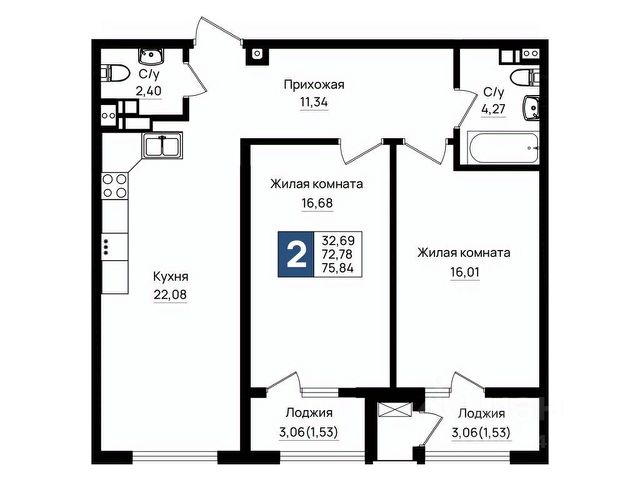 Панорамные окна, два сан узла.