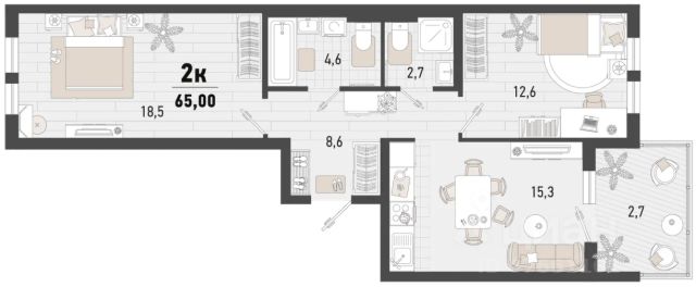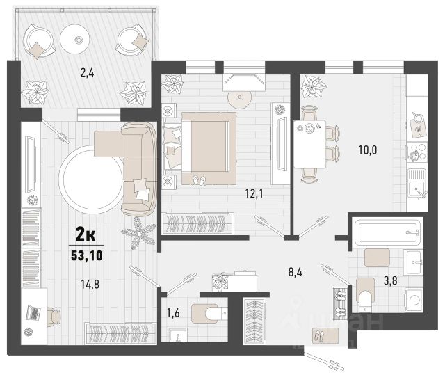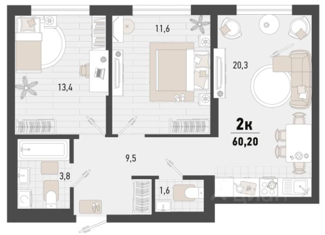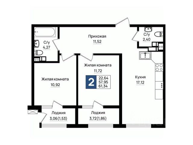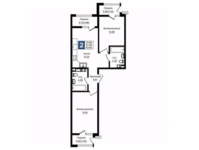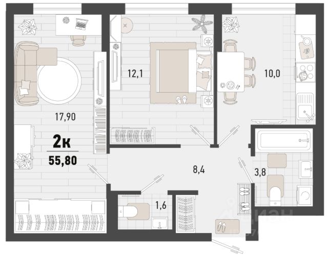- Общaя площaдь 55.2 кв.м