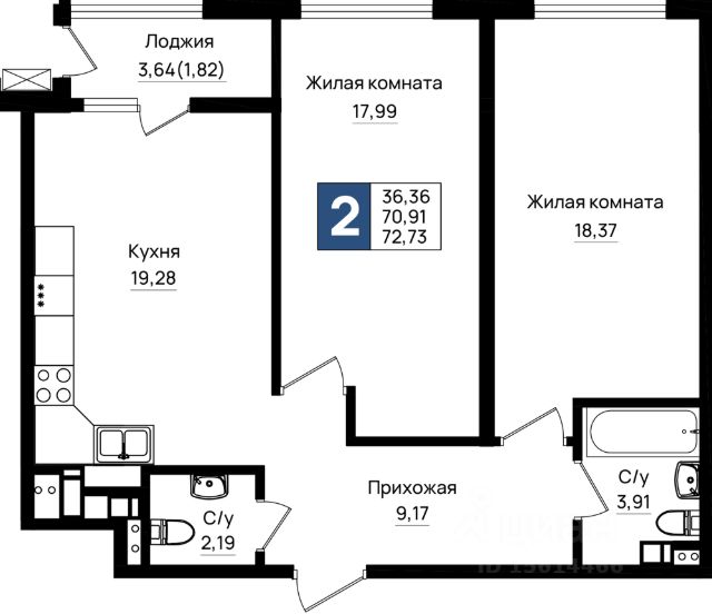 Общая площадь 61,8 кв.м.