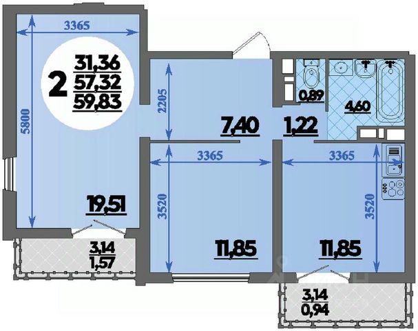 • Санузел под ключ: ванна с декоративным экраном, удобная раковина с пьедесталом, смесители, полотенцесушитель. На полу керамогранит