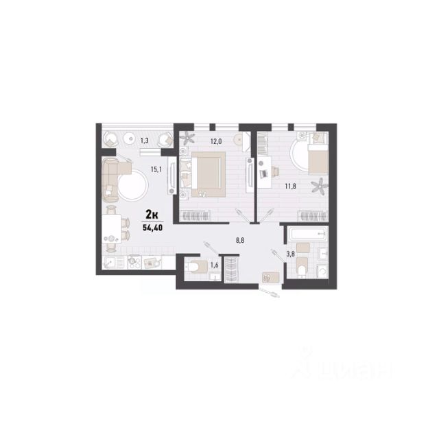 Общая площадь 61,8 кв.м.