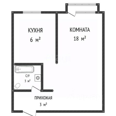 Квартира не угловая, с продуманной планировкой и большой кухней 15,5 м²