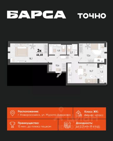Жилой комплекс "Барса" включает в себя 5 корпусов переменной этажности: от 15 до 24 этажей. Дом возводится по долговечной монолитной технологии. Фасады облицованы кирпичом. В проекте выполнена дизайнерская отделка входных групп, установлены современные скоростные лифты. В жилом комплексе "Барса" предложено множество планировочных решений: в наличии квартиры, как классического типа, так и европланировки. Сдаются они с чистовой отделкой, панорамными окнами и высотой потолков 2,66 метра. Комплекс находится под охраной и видеонаблюдением. Территория комплекса благоустроена, организованы аллеи для прогулок, детские площадки и спортивные зоны. Двор комплекса закрыт от автомобилей. Для автовладельцев предусмотрен отдельный многоуровневый паркинг. Жилой комплекс "Барса" расположен в Южном районе Новороссийска. В пешей доступности работают: школа, поликлиника, детский сад, магазины, отделения банков и магазины. До центра Новороссийска — 15 минут транспортом.