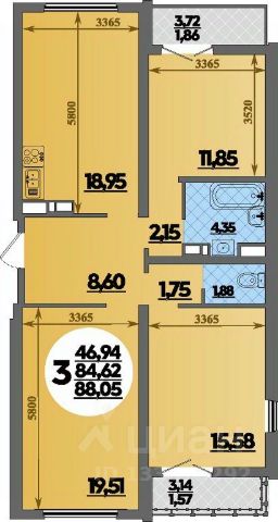 Общая площадь 91.49 кв.м,
