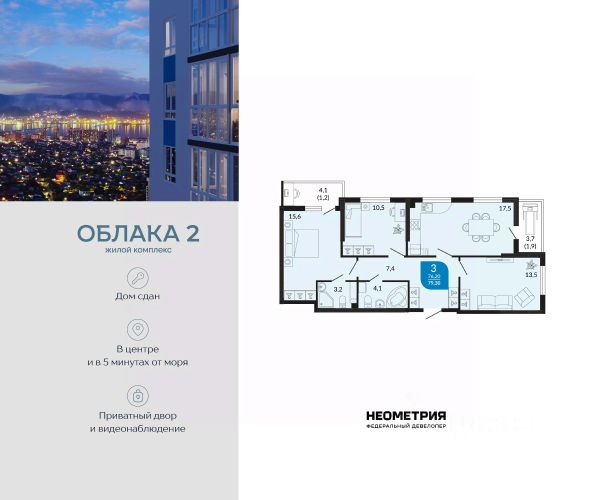 Уникальная 3-комнатная Квартира 27 площадью 89,18 кв.м. в ЖК "Золотой Берег" — 800 метров или 10 минут до моря, современный дизайн и все условия для комфортной жизни! Предлагаем вам идеальную квартиру в жилом комплексе "Золотой Берег" от компании "СРЕДАстрой". Это уникальное предложение сочетает в себе все, что нужно для удобной и комфортной жизни в одном из лучших районов города. Преимущества квартиры: • 800 метров или 10 минут до моря — наслаждайтесь свежим морским воздухом, ежедневным завораживающим видом на море, живописным закатом и это каждый день. • Ипотека от 3,5 % — доступные условия для приобретения квартиры/ жилья вашей мечты. • Рядом с домом: 2 детских сада, 4 школы — всё необходимое для развития и обучения ваших детей в шаговой доступности. • Детские площадки во дворе без машин — безопасная среда для игр и отдыха. • Выбор отделки: квартиры с качественной отделкой или качественная ПЧО/ без отделки, что позволит вам создать интерьер по своему вкусу. • Современный и красивый дизайн домов, подъездных холов — эстетика и стиль, продуманные до мелочей. Инфраструктура: • В шаговой доступности: гипермаркет Лента, магазины, кафе, аптеки, фитнес-центры — всё, что нужно для комфортной жизни. • Тип дома: монолитно-кирпичный, построенный по современным технологиям, 17/ 16 этажей с прилегающими торгово-офисными помещениями. • Паркинг: -1 этаж подземный отапливаемый паркинг с видеонаблюдением 24/7. Прямой доступ на лифте — удобно и безопасно.закрытая территория всего комплекса, нет посторонних людей. Описание квартиры: • Просторные комнаты с продуманной планировкой и панорамными окнами. • Возможность индивидуального дизайна интерьера или готовая качественная отделка. • Современные инженерные системы и высококачественные материалы. ЖК "Золотой Берег" — это сочетание высокого качества строительства, удобной инфраструктуры и прекрасного расположения. Здесь каждый найдет всё, что нужно для комфортной и счастливой жизни. Купить 3-комнатную квартиру с отделкой от застройщика в Новороссийске.