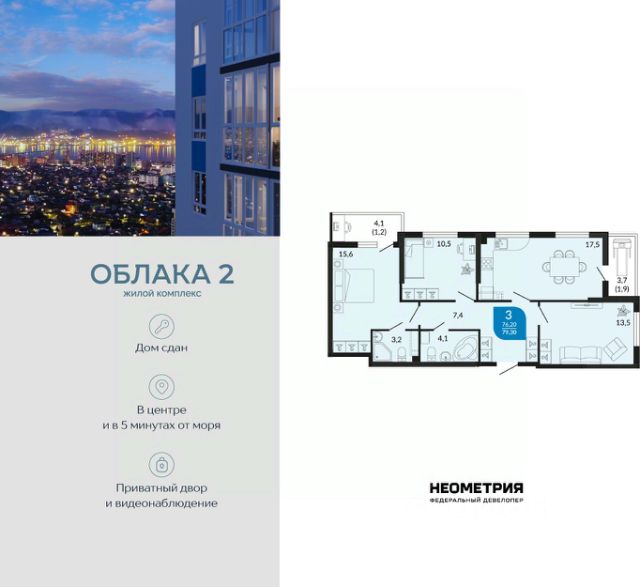 Уникальная 3-комнатная Квартира 13 площадью 82,79 кв.м. в ЖК "Золотой Берег" — 800 метров или 10 минут до моря, современный дизайн и все условия для комфортной жизни! Предлагаем вам идеальную квартиру в жилом комплексе "Золотой Берег" от компании "СРЕДАстрой". Это уникальное предложение сочетает в себе все, что нужно для удобной и комфортной жизни в одном из лучших районов города. Преимущества квартиры: • 800 метров или 10 минут до моря — наслаждайтесь свежим морским воздухом, ежедневным завораживающим видом на море, живописным закатом и это каждый день. • Ипотека от 3,5 % — доступные условия для приобретения квартиры/ жилья вашей мечты. • Рядом с домом: 2 детских сада, 4 школы — всё необходимое для развития и обучения ваших детей в шаговой доступности. • Детские площадки во дворе без машин — безопасная среда для игр и отдыха. • Выбор отделки: квартиры с качественной отделкой или качественная ПЧО/ без отделки, что позволит вам создать интерьер по своему вкусу. • Современный и красивый дизайн домов, подъездных холов — эстетика и стиль, продуманные до мелочей. Инфраструктура: • В шаговой доступности: гипермаркет Лента, магазины, кафе, аптеки, фитнес-центры — всё, что нужно для комфортной жизни. • Тип дома: монолитно-кирпичный, построенный по современным технологиям, 17/ 16 этажей с прилегающими торгово-офисными помещениями. • Паркинг: -1 этаж подземный отапливаемый паркинг с видеонаблюдением 24/7. Прямой доступ на лифте — удобно и безопасно.закрытая территория всего комплекса, нет посторонних людей. Описание квартиры: • Просторные комнаты с продуманной планировкой и панорамными окнами. • Возможность индивидуального дизайна интерьера или готовая качественная отделка. • Современные инженерные системы и высококачественные материалы. ЖК "Золотой Берег" — это сочетание высокого качества строительства, удобной инфраструктуры и прекрасного расположения. Здесь каждый найдет всё, что нужно для комфортной и счастливой жизни. Продам 3-комнатную квартиру от застройщика в Новороссийске.