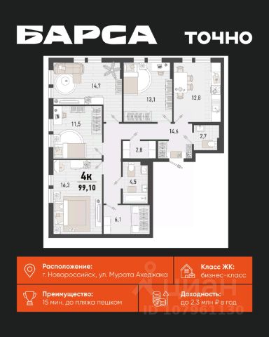 Тогда этот вариант просторнейшей 142,6 кВм квартиры точно для вас!