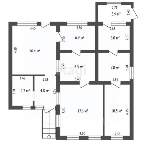 Дом капитальный, перекрытие монолитное, состоит из бетона, снаружи отделан кирпичом, цоколь высокий.