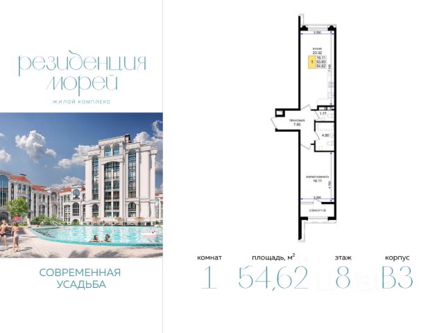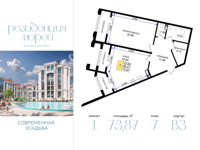Третий? Пятый? Нет — 7 этаж идеален. А хорошие виды на море и город прилагаются. Дом камерный, где все свои — всего 23 квартиры, поэтому здесь тихо и приватно. На этаже всего 2 квартиры.