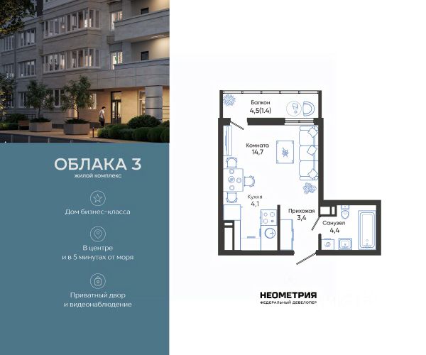 Проект включает в себя 2 дома высотой 23-24 этажа. В подъездах выполнена дизайнерская отделка в светлой цветовой гамме, для удобства жителей в местах общего пользования предусмотрена навигация. В каждой секции предусмотрены помещения для хранения велосипедов и колясок с обустроенным местом для мойки колес и лап домашних животных. Покупателям в ЖК предложено множество планировочных решений: в наличии квартиры, как классического типа, так и европланировки. На балконах и лоджиях выполнено витражное остекление. Из окон открывается шикарный вид на город и море. Квартиры сдаются без отделки. Двор комплекса закрыт от автомобилей и случайных прохожих. Для автовладельцев предусмотрен двухуровневый подземный паркинг на 650 мест. По всему периметру двора размещены видеокамеры. Внутренний двор благоустроен: предусмотрены пешеходные дорожки, скамейки и деревянные мини-беседки с розетками. Также спроектированы детские игровые площадки, уличные тренажеры и спортивная площадка для командных игр. ЖК расположен в южной части Новороссийска, на пересечении Мысхакского шоссе и улицы Куникова. Инфраструктура района развита: в пешей доступности детские сады, школы, аптеки и поликлиники, магазины и парки.