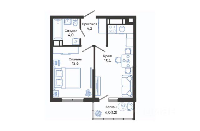 - Продуманы 2 рабочих места на кухне и в комнате, для удаленщиков идеально.