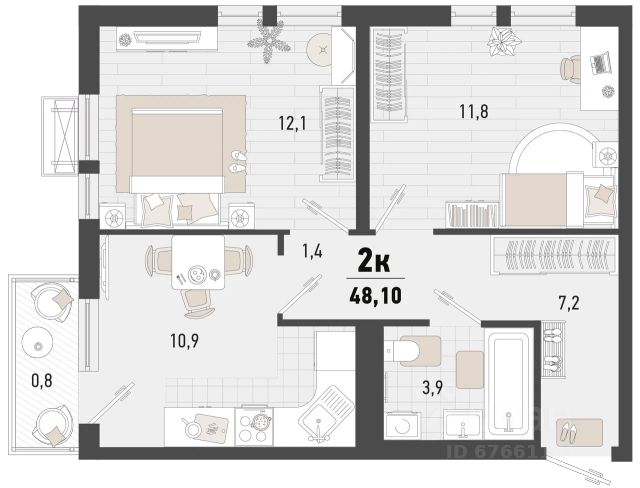 В квартире остается мебель и техника по договоренности.