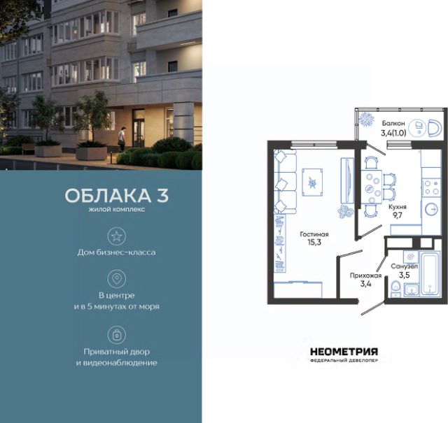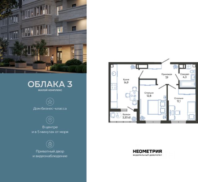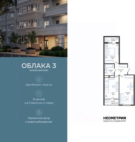 Продается квартира в жилом комплексе "Облака" от федерального девелопера "Неометрия". Современный жилой комплекс расположен на границе Южного и Центрального районов Новороссийска — в развитой, благоустроенной локации всего в 5 минутах езды от моря и центра города. Здесь мягкий климат, чистый воздух и гармоничное сочетание природы и городской инфраструктуры. Всё для комфортной жизни: • Закрытая дворовая территория без машин; • Подземный паркинг с доступом на лифте; • Колясочные в каждом подъезде; • Сквозные входные группы на уровне земли; • Просторные квартиры с видами на горы и море. Современное благоустройство: Во дворах реализована концепция "активити-парка" — это большое зелёное пространство для отдыха и занятий спортом: • Детские площадки, разделенные по возрасту ребенка; • Зоны воркаута, йоги и командных игр, внесенные за периметр двора; • Озеленённые аллеи и уютные места для прогулок; • Общественные огороды для семейного досуга. Развитая инфраструктура в шаговой доступности: • 5 детских садов; • 3 школы; • 5 высших учебных заведений; • 2 поликлиники; • 2 крупных торговых центра; • Супермаркеты и магазины; • Удобные остановки общественного транспорта. Застройка ведётся по 214-ФЗ с использованием эскроу-счетов, что обеспечивает безопасность сделки и прозрачность на всех этапах. • 3 очередь проекта — сдача в IV квартале 2026 года, класс бизнес • 2 очередь — сдана в 2024 г., класс комфорт-плюс • 1 очередь — сдана в 2020 г., класс комфорт-плюс #Zt0vCW