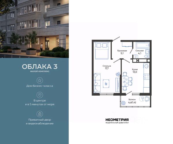 Проект включает в себя 2 дома высотой 18-21 этаж. В подъездах выполнена дизайнерская отделка в светлой цветовой гамме, для удобства жителей в местах общего пользования предусмотрена навигация. В каждой секции предусмотрены помещения для хранения велосипедов и колясок с обустроенным местом для мойки колес и лап домашних животных. Покупателям в ЖК предложено множество планировочных решений: в наличии квартиры, как классического типа, так и европланировки. На балконах и лоджиях выполнено витражное остекление. Из окон открывается шикарный вид на город и море. Квартиры сдаются без отделки. Двор комплекса закрыт от автомобилей и случайных прохожих. Для автовладельцев предусмотрен двухуровневый подземный паркинг на 650 мест. По всему периметру двора размещены видеокамеры. Внутренний двор благоустроен: предусмотрены пешеходные дорожки, скамейки и деревянные мини-беседки с розетками. Также спроектированы детские игровые площадки, уличные тренажеры и спортивная площадка для командных игр. Жилой комплекс расположен в южной части Новороссийска, на пересечении Мысхакского шоссе и улицы Куникова. Инфраструктура района развита: в пешей доступности детские сады, школы, аптеки и поликлиники, магазины и парки. Продам квартиру на улице Куникова в городе Новороссийск.