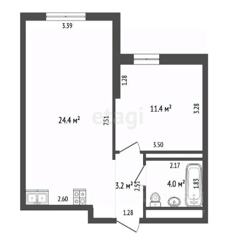 Жилая площадь: 38,1 кв.м. (комнаты 10,2 + 11,2 + 16,7 кв.м.)
