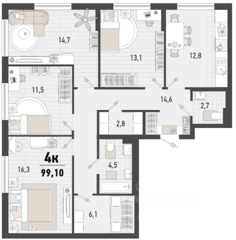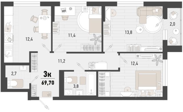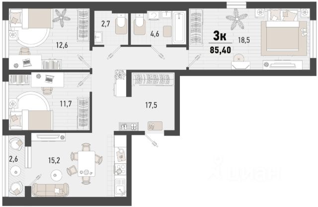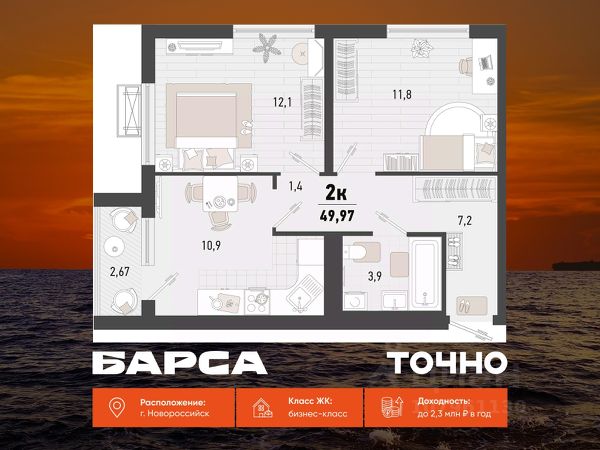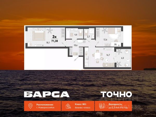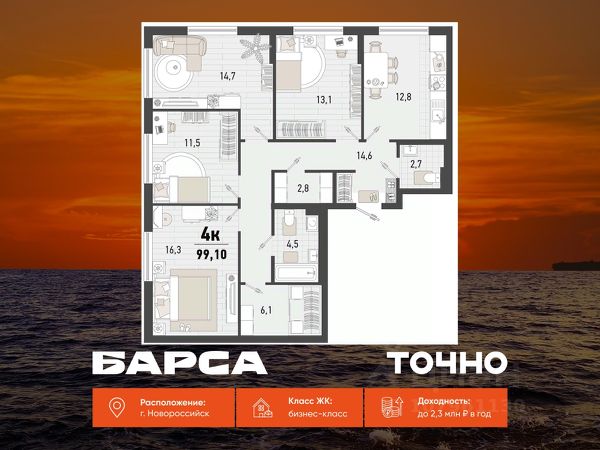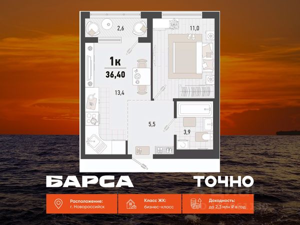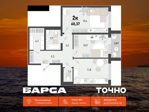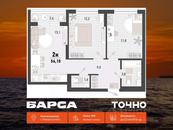 Продаётся 2-комнатная квартира в строящемся доме (Дом 4В), срок сдачи: II-кв. 2027, общей площадью 56.4 кв.м., на 15 этаже. Жилой комплекс "Барса" расположился в самом живописном Южном районе Новороссийска, всего в 15 минутах ходьбы от пляжа "Алексино". Море будет видно даже из окон невысоких этажей. Проект объединяет просторные квартиры с панорамными окнами, продуманные зоны отдыха и площадки для спорта, прогулочный бульвар, беседки и уникальные арт-объекты. В жилом комплексе запланированы детский сад на 380 мест и школа на 1 750 мест. Больше не нужно выбирать между жизнью на курорте и в мегаполисе. "Барса" — новый проект для безупречной жизни людей на побережье!