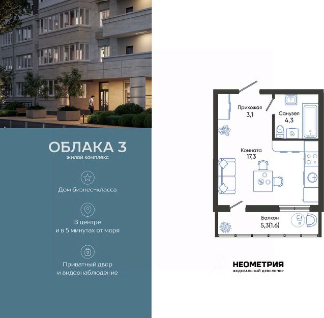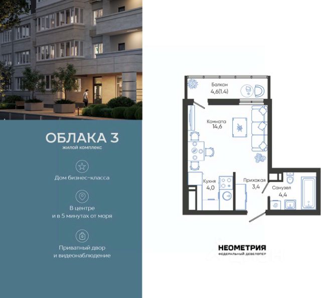 Проект включает в себя 2 дома высотой 23-24 этажа. В подъездах выполнена дизайнерская отделка в светлой цветовой гамме, для удобства жителей в местах общего пользования предусмотрена навигация. В каждой секции предусмотрены помещения для хранения велосипедов и колясок с обустроенным местом для мойки колес и лап домашних животных. Покупателям в ЖК предложено множество планировочных решений: в наличии квартиры, как классического типа, так и европланировки. На балконах и лоджиях выполнено витражное остекление. Из окон открывается шикарный вид на город и море. Квартиры сдаются без отделки. Двор комплекса закрыт от автомобилей и случайных прохожих. Для автовладельцев предусмотрен двухуровневый подземный паркинг на 650 мест. По всему периметру двора размещены видеокамеры. Внутренний двор благоустроен: предусмотрены пешеходные дорожки, скамейки и деревянные мини-беседки с розетками. Также спроектированы детские игровые площадки, уличные тренажеры и спортивная площадка для командных игр. ЖК расположен в южной части Новороссийска, на пересечении Мысхакского шоссе и улицы Куникова. Инфраструктура района развита: в пешей доступности детские сады, школы, аптеки и поликлиники, магазины и парки.