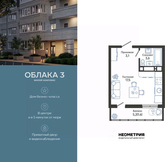 Продается квартира в жилом комплексе "Облака" от федерального девелопера "Неометрия". Современный жилой комплекс расположен на границе Южного и Центрального районов Новороссийска — в развитой, благоустроенной локации всего в 5 минутах езды от моря и центра города. Здесь мягкий климат, чистый воздух и гармоничное сочетание природы и городской инфраструктуры. Всё для комфортной жизни: • Закрытая дворовая территория без машин; • Подземный паркинг с доступом на лифте; • Колясочные в каждом подъезде; • Сквозные входные группы на уровне земли; • Просторные квартиры с видами на горы и море. Современное благоустройство: Во дворах реализована концепция "активити-парка" — это большое зелёное пространство для отдыха и занятий спортом: • Детские площадки, разделенные по возрасту ребенка; • Зоны воркаута, йоги и командных игр, внесенные за периметр двора; • Озеленённые аллеи и уютные места для прогулок; • Общественные огороды для семейного досуга. Развитая инфраструктура в шаговой доступности: • 5 детских садов; • 3 школы; • 5 высших учебных заведений; • 2 поликлиники; • 2 крупных торговых центра; • Супермаркеты и магазины; • Удобные остановки общественного транспорта. Застройка ведётся по 214-ФЗ с использованием эскроу-счетов, что обеспечивает безопасность сделки и прозрачность на всех этапах. • 3 очередь проекта — сдача в IV квартале 2026 года, класс бизнес • 2 очередь — сдана в 2024 г., класс комфорт-плюс • 1 очередь — сдана в 2020 г., класс комфорт-плюс #2ToBuU