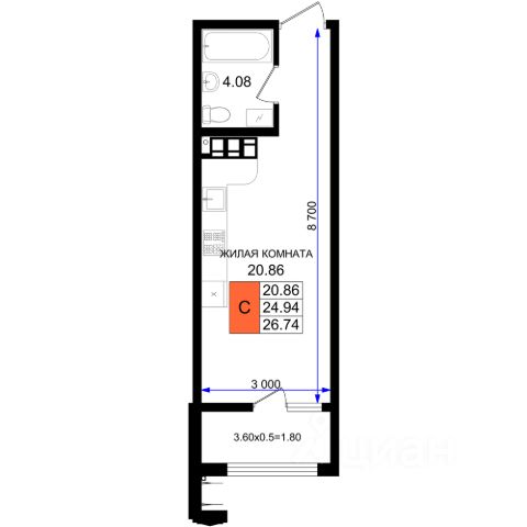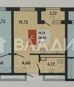 Общая площадь квартиры 27,2 кв.м.;