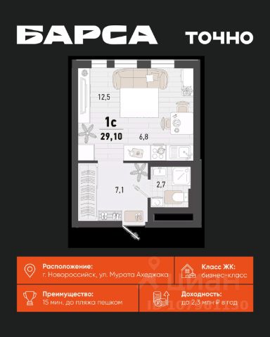 Проект включает в себя 2 дома высотой 23-24 этажа. В подъездах выполнена дизайнерская отделка в светлой цветовой гамме, для удобства жителей в местах общего пользования предусмотрена навигация. В каждой секции предусмотрены помещения для хранения велосипедов и колясок с обустроенным местом для мойки колес и лап домашних животных. Покупателям в ЖК предложено множество планировочных решений: в наличии квартиры, как классического типа, так и европланировки. На балконах и лоджиях выполнено витражное остекление. Из окон открывается шикарный вид на город и море. Квартиры сдаются без отделки. Двор комплекса закрыт от автомобилей и случайных прохожих. Для автовладельцев предусмотрен двухуровневый подземный паркинг на 650 мест. По всему периметру двора размещены видеокамеры. Внутренний двор благоустроен: предусмотрены пешеходные дорожки, скамейки и деревянные мини-беседки с розетками. Также спроектированы детские игровые площадки, уличные тренажеры и спортивная площадка для командных игр. ЖК расположен в южной части Новороссийска, на пересечении Мысхакского шоссе и улицы Куникова. Инфраструктура района развита: в пешей доступности детские сады, школы, аптеки и поликлиники, магазины и парки. Продам квартиру-студию в новостройке в Новороссийске.