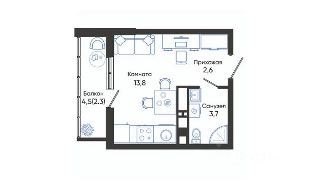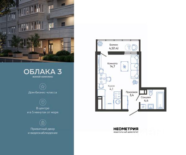 Проект включает в себя 2 дома высотой 23-24 этажа. В подъездах выполнена дизайнерская отделка в светлой цветовой гамме, для удобства жителей в местах общего пользования предусмотрена навигация. В каждой секции предусмотрены помещения для хранения велосипедов и колясок с обустроенным местом для мойки колес и лап домашних животных. Покупателям в ЖК предложено множество планировочных решений: в наличии квартиры, как классического типа, так и европланировки. На балконах и лоджиях выполнено витражное остекление. Из окон открывается шикарный вид на город и море. Квартиры сдаются без отделки. Двор комплекса закрыт от автомобилей и случайных прохожих. Для автовладельцев предусмотрен двухуровневый подземный паркинг на 650 мест. По всему периметру двора размещены видеокамеры. Внутренний двор благоустроен: предусмотрены пешеходные дорожки, скамейки и деревянные мини-беседки с розетками. Также спроектированы детские игровые площадки, уличные тренажеры и спортивная площадка для командных игр. ЖК расположен в южной части Новороссийска, на пересечении Мысхакского шоссе и улицы Куникова. Инфраструктура района развита: в пешей доступности детские сады, школы, аптеки и поликлиники, магазины и парки. Продается квартира-студия квартир-студий в Облака в Новороссийске.