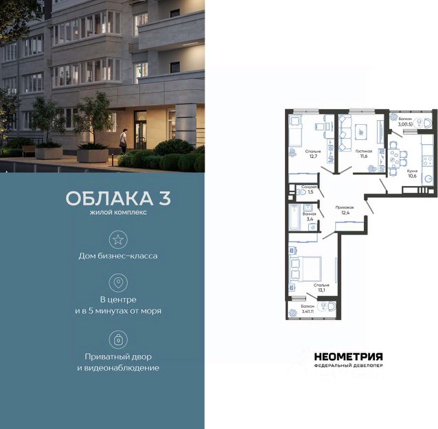 Продается квартира в жилом комплексе "Облака" от федерального девелопера "Неометрия". Современный жилой комплекс расположен на границе Южного и Центрального районов Новороссийска — в развитой, благоустроенной локации всего в 5 минутах езды от моря и центра города. Здесь мягкий климат, чистый воздух и гармоничное сочетание природы и городской инфраструктуры. Всё для комфортной жизни: • Закрытая дворовая территория без машин; • Подземный паркинг с доступом на лифте; • Колясочные в каждом подъезде; • Сквозные входные группы на уровне земли; • Просторные квартиры с видами на горы и море. Современное благоустройство: Во дворах реализована концепция "активити-парка" — это большое зелёное пространство для отдыха и занятий спортом: • Детские площадки, разделенные по возрасту ребенка; • Зоны воркаута, йоги и командных игр, внесенные за периметр двора; • Озеленённые аллеи и уютные места для прогулок; • Общественные огороды для семейного досуга. Развитая инфраструктура в шаговой доступности: • 5 детских садов; • 3 школы; • 5 высших учебных заведений; • 2 поликлиники; • 2 крупных торговых центра; • Супермаркеты и магазины; • Удобные остановки общественного транспорта. Застройка ведётся по 214-ФЗ с использованием эскроу-счетов, что обеспечивает безопасность сделки и прозрачность на всех этапах. • 3 очередь проекта — сдача в IV квартале 2026 года, класс бизнес • 2 очередь — сдана в 2024 г., класс комфорт-плюс • 1 очередь — сдана в 2020 г., класс комфорт-плюс #Z70AeC Квартира квартир в Облака в Новороссийске.