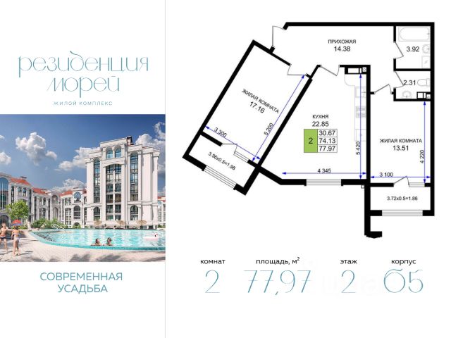 Двухкомнатная квартира в ЖК премиум-класса "Резиденция морей" - это не просто жилье, а образ жизни, выстроенный вокруг комфорта, эстетики и гармонии с природой. Просторная кухня, продуманная до мелочей, становится сердцем дома - местом, где рождаются уютные вечера и теплые воспоминания. Две светлые изолированные комнаты обеспечивают личное пространство каждому, сохраняя при этом ощущение целостности и уюта. Панорамное витражное остекление наполняет интерьер мягким светом и открывает впечатляющие виды на бескрайнее море и живописные склоны горы Мысхако. А просторная лоджия - это ваше личное террасное убежище: утренний кофе под шум волн, вечерние закаты или тихие минуты наедине с собой - все это теперь часть вашей повседневности.