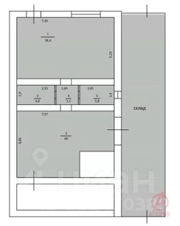 С улицы вход в торговый зал 39 кв/м, далее небольшие вспомогательные и склад 60 кв/м, отсюда есть дверь на территорию дополнительного склада - 80 кв/м с въездом в отдельные ворота.