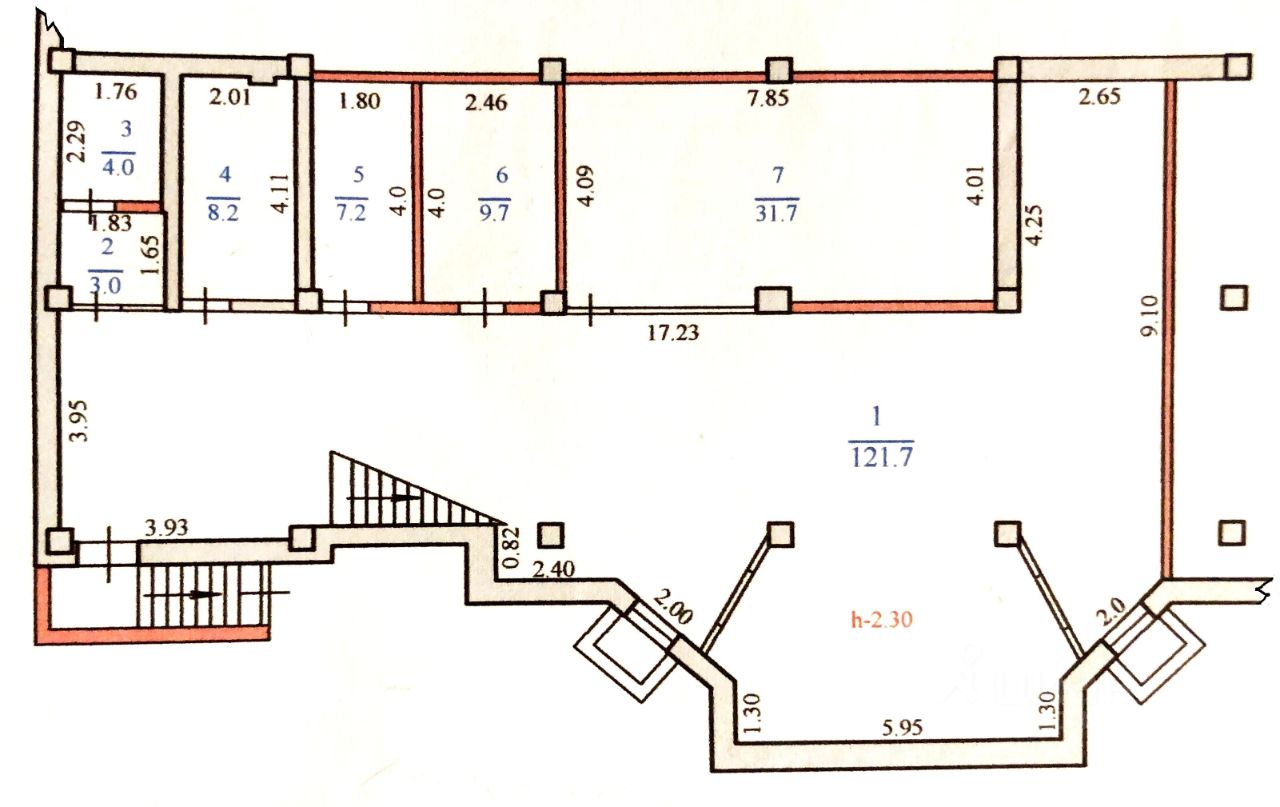 Сдается помещение свободного назначения в 10 мкр, угол пр. Дзержинского/ ул. Героев Десантников, цокольный этаж, о/п 182,7 кв. м, состоит из общей комнаты о/п 122 кв. м (в конце зала в тупичке обустроен санузел), 4 отдельных помещения площадью: 31,7 кв. м, 7,2 кв. м, 8,2 кв. м, 9,7 кв. м, а также в помещениях 2-3 (7 кв. м) организовано помещение с сейфовой дверью и сейфом. Мебели/оборудования нет, помещение ПУСТОЕ. Можно под офис, магазин и прочее. Аренда 90 000 руб. + счетчики. Состояние хорошее. Дополнительно агентские 50%.