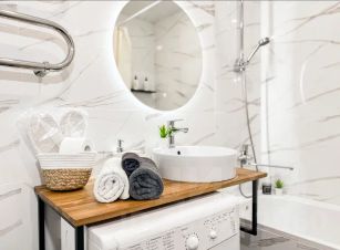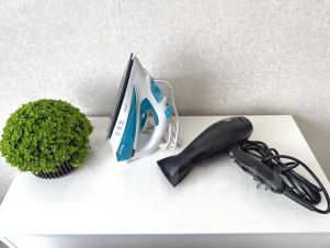 - а также: кондиционер, чайник, микроволновка, посуда, стиральная машинка, фен, утюг, шампунь, гель для душа, ароматное жидкое мыло, зубной набор, одноразовые тапочки.