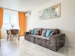 3х комнатная квартира с прекрасным видом на открытое море в новом монолитном доме ЖК Черноморский. 7 спальных мест плюс по запросу представляем детскую кроватку и стульчик для кормления малыша.