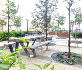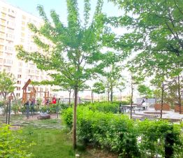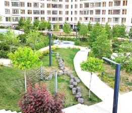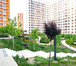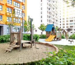 Придомовая территория облагорожена, шикарная игровая детская площадка, имеет зелёные насаждения, большое количество беседок и скамеек для отдыха.