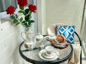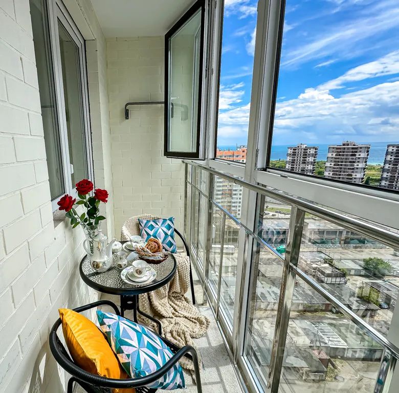 Лоджия с витражными окнами, вид на море и гору Колдун.