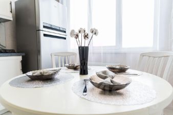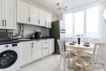 Кухня: вся необходимая техника (холодильник, плита, микроволновка, чайник, посудомоечная машина, кофемашина ) и посуда.