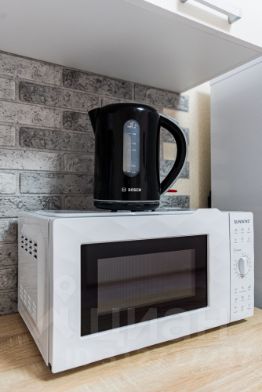Кухня: вся необходимая техника (холодильник, плита, микроволновка, чайник, духовка) и посуда.