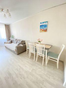 Сдаётся посуточно просторная и уютная квартира с видом на Чёрное море и горы. До пляжа — всего 3 минуты пешком.
