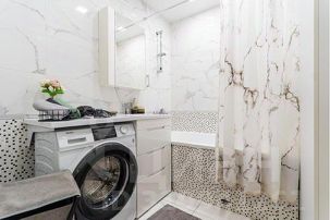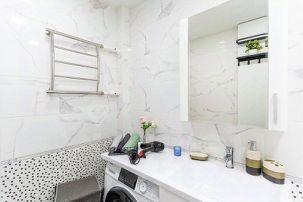 Ванная с ванной, стиральная машина, микроволновка, холодильник, утюг, фен, пылесос