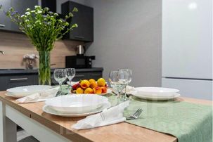 •Полностью оборудованная кухня с современными приборами и полным набором посуды